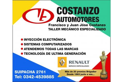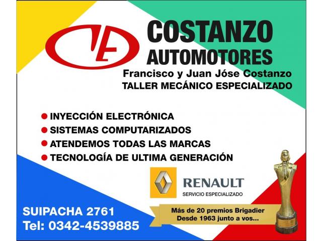 COSTANZO AUTOMOTORES: Taller Mecánico Especializado. Francisco y Juan Jóse Costanzo. Inyección Electrónica - Sistemas Computarizados -Atendemos todas las marcas - Tecnología de ultima generación. RENAULT SERVICIO ESPECIALIZADO. Más de 20 premios Brigadier Desde 1963 junto a vos... SUIPACHA 2761 - SANTA FE 0342-4539885